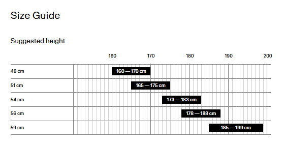 5 sizes from 48cm to 59cm fit nearly every rider.
