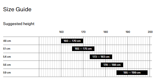 5 sizes from 48cm to 59cm fit nearly every rider.