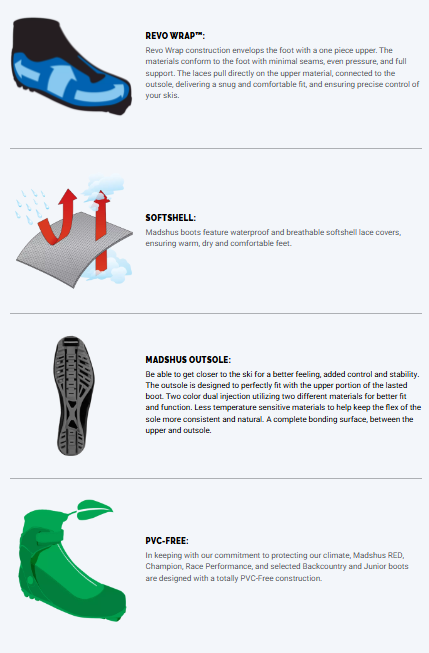 We have created a boot that is equally efficient and comfortable for skating as well as for striding. The boot has a flexible forefoot construction that provides a precise kick when classic striding, a stable ankle cuff to provide lateral support when skating, and the Madshus performance outsole for durable performance in both techniques, making the Race Speed Universal an excellent choice regardless of your skiing technique.