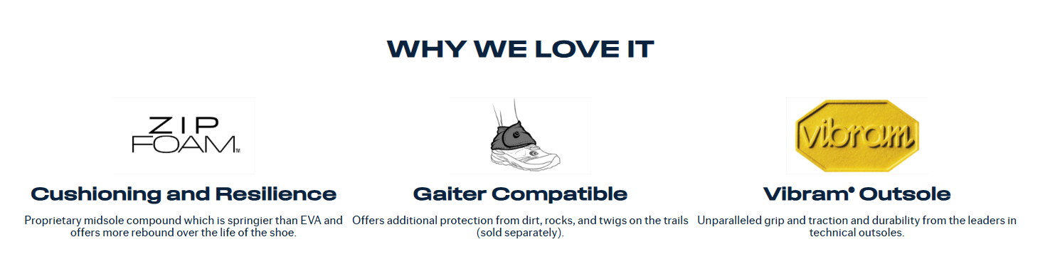 Our new upper is fine-tuned for performance on technical terrain. The MTN Racer 4 now features our FKT insole, allowing for faster water drainage and added rebound, while our improved gaiter attachment system keeps out debris.